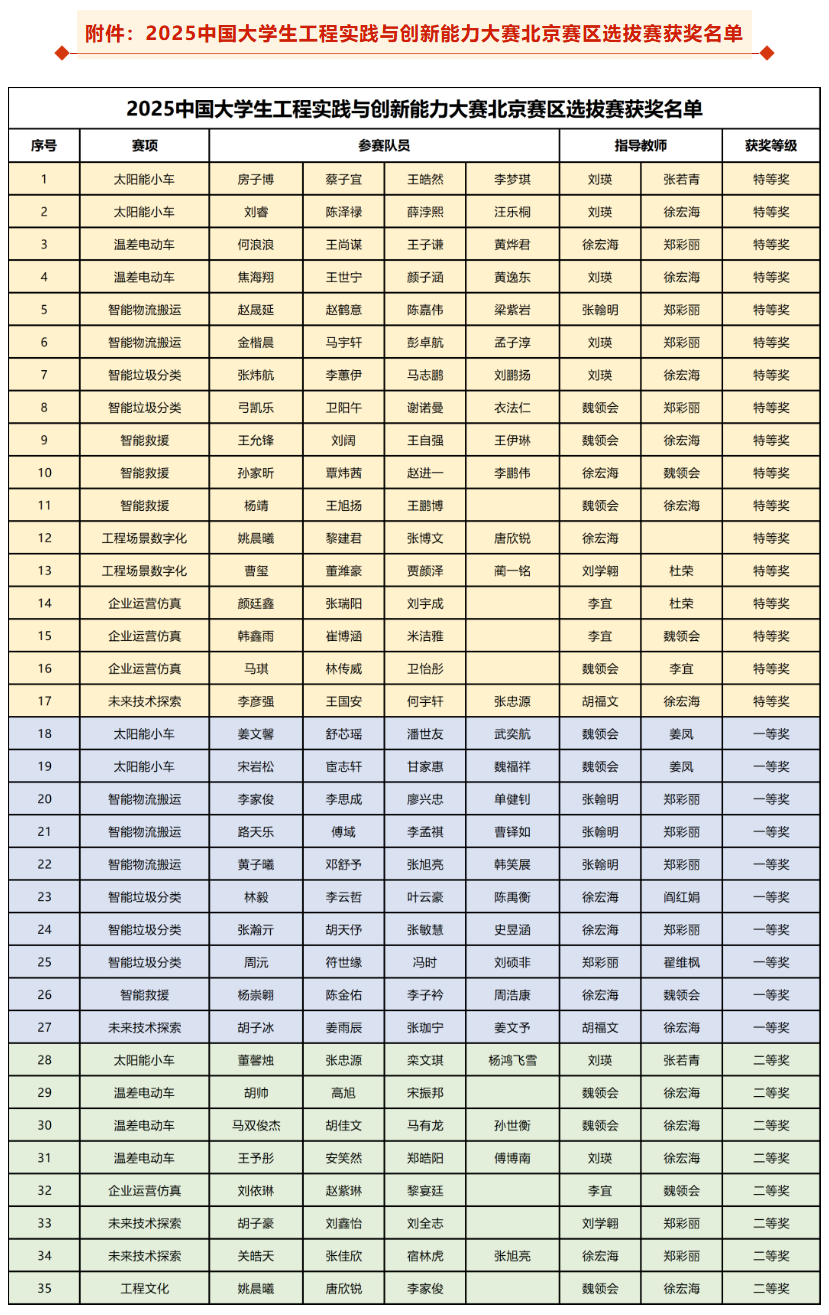 我校学生在2025中国大学生工程实践与创新能力大赛北京赛区选拔赛中喜创优异赛绩