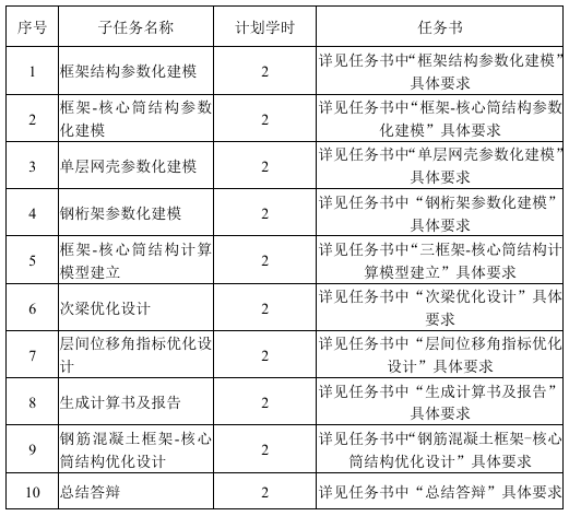 本课程共32学时,其中授课12学时,另20学时为项目实践任务,每人独立完成一个案例的完整流程,包括数字化建模和结构优化设计。内容如下,任务书详见附件。