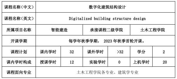 的智能建造产业教育项目开设的一门课程,旨在培养学生自主进行结构参数化建模和优化设计的能力。