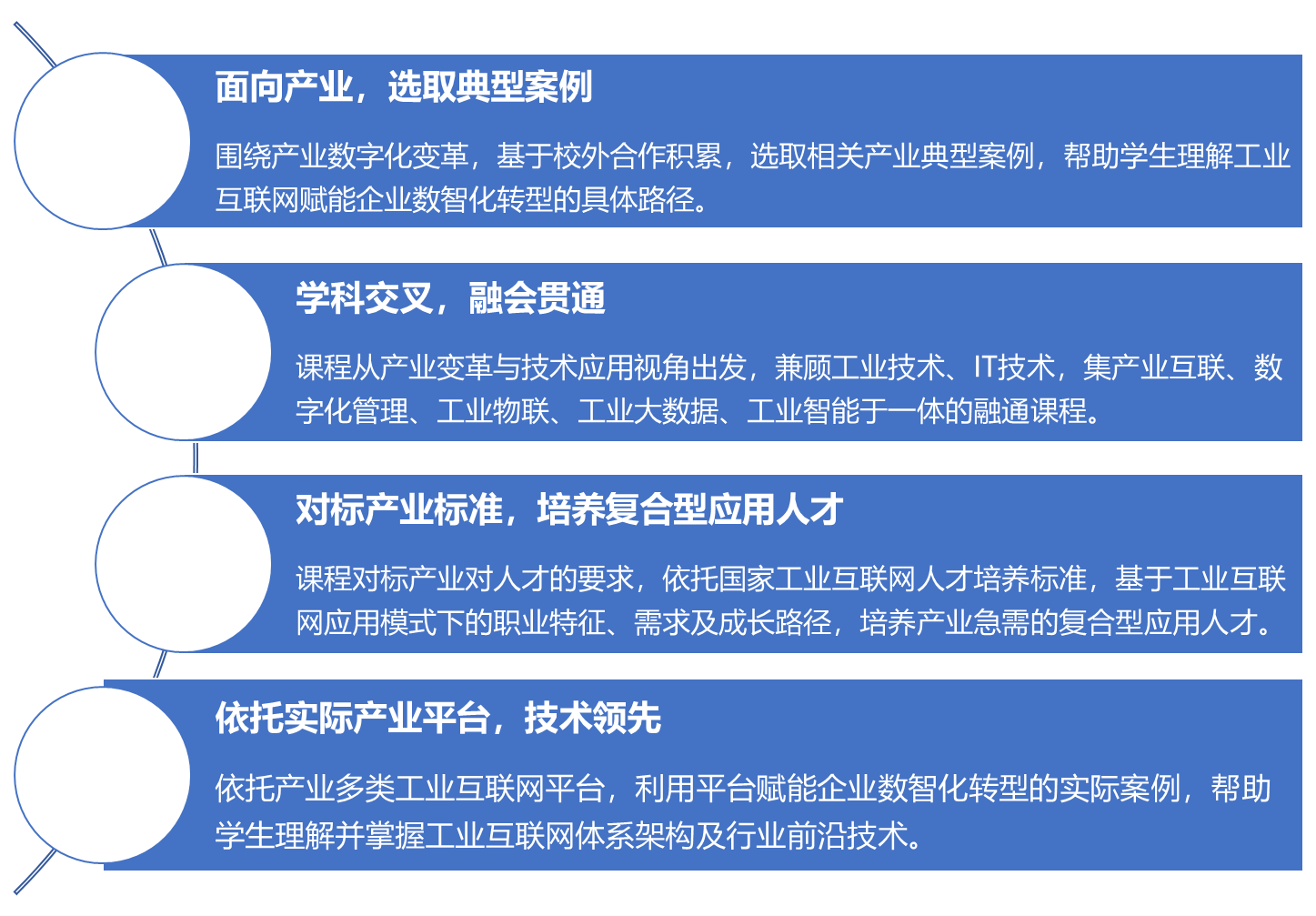 由浅入深,配套阶段性实践内容,使学生掌握基础实践动手能力、项目分析能力、企业项目开发能力,熟悉工业互联网多个行业的项目特点,掌握相关专业技术,并参与开发真实企业项目,提高解决实际工程、项目的综合能力。