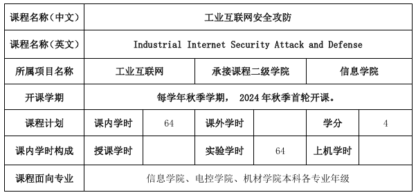 本课程旨在培养学生对工业互联网安全的理解和实践能力,让学生能够了解工业控制系统的基本原理、常见攻击面以及相应的防御措施,并通过实验掌握相关的安全技术和工具。最终的目标是掌握网络攻击和防御的基本技能,提升网络安全意识和能力,并在实践中寻找和修补系统中的漏洞和弱点。